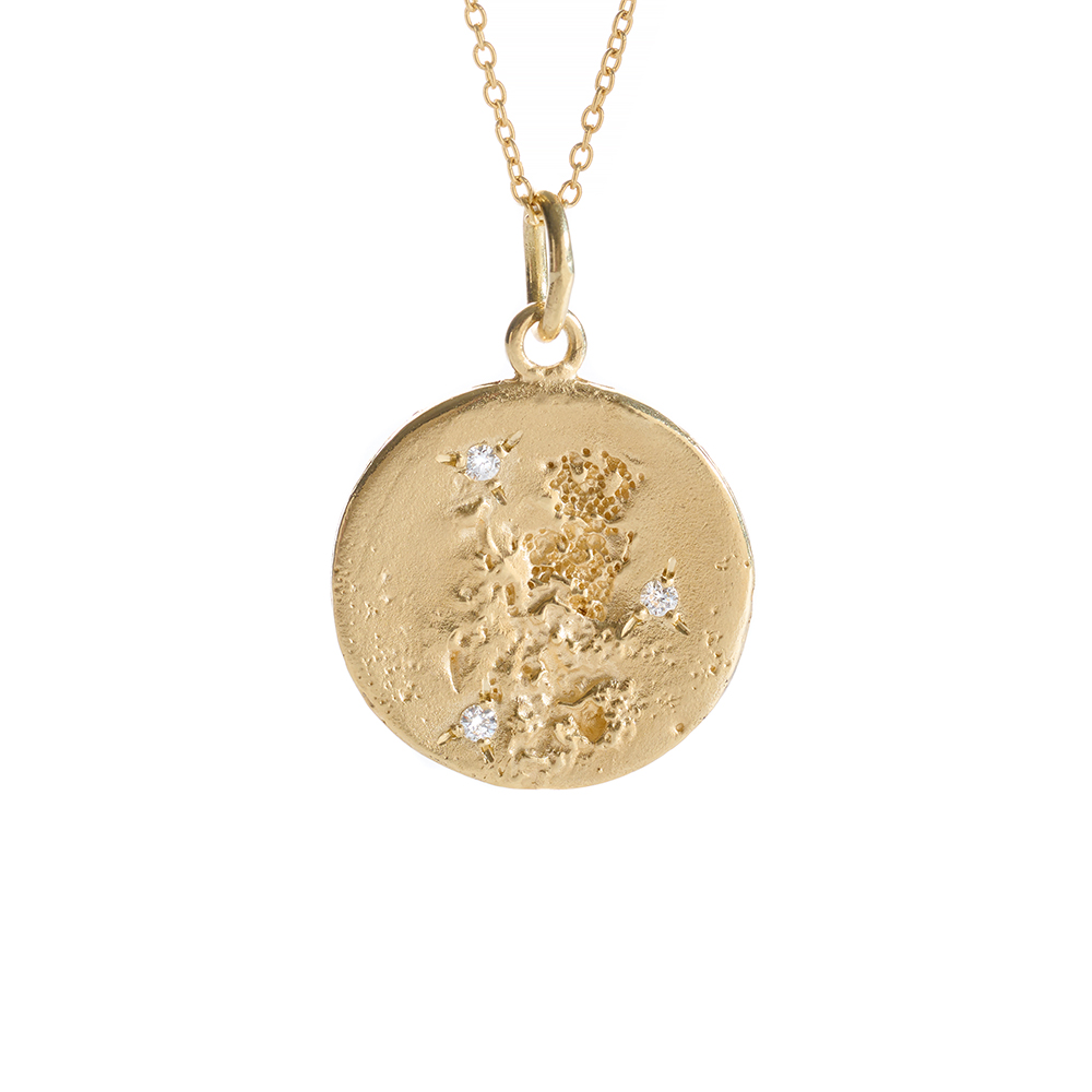 Necklace crafted from 18kt yellow gold, natural tint. Optionally set with 3x0,01ct natural diamonds, brilliant cut.