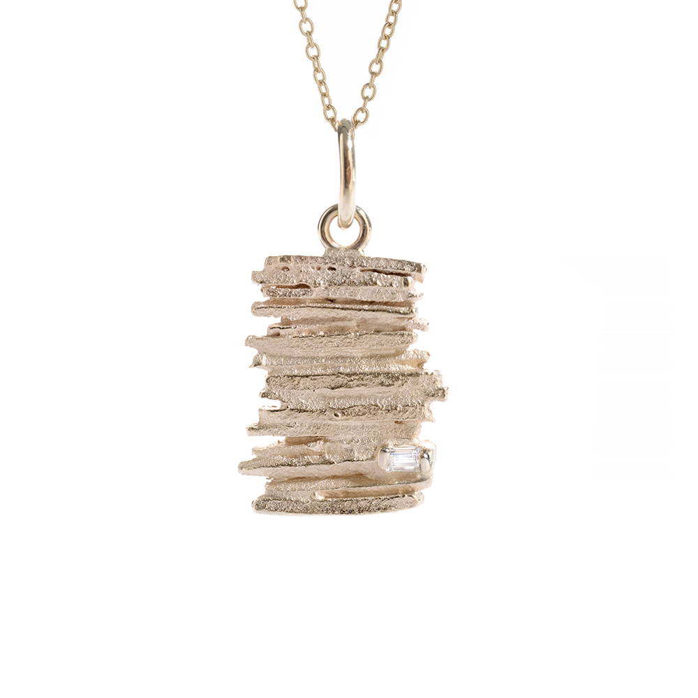 Gold pendant with baguette diamond