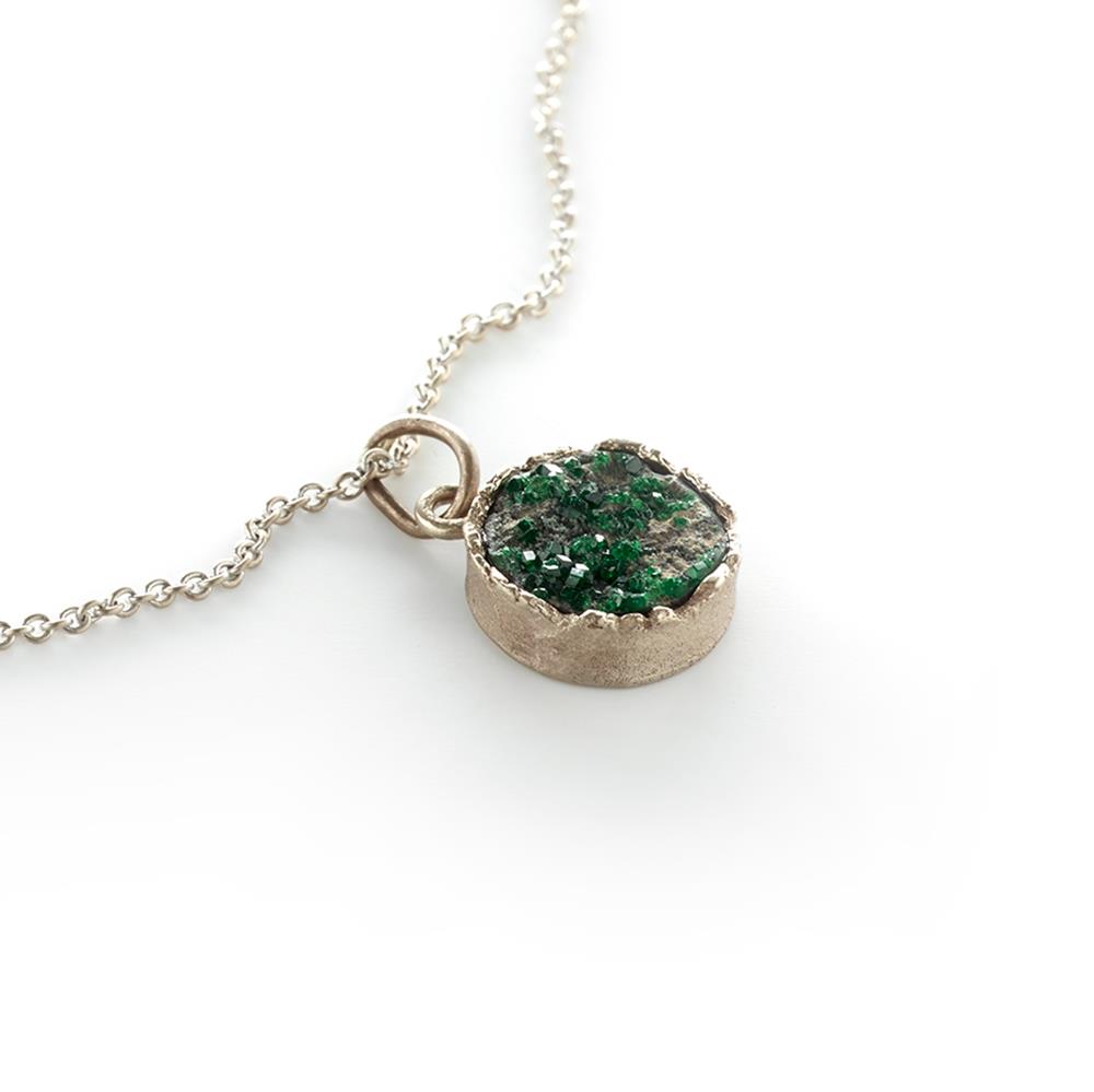 Pendatif réalisées en or blanc 18 carats, teinte naturelle. Serties avec une agate uvarovite.